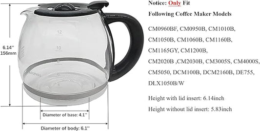 Coffee Make Replacement 12-CUP Glass Pot, Fit With Kitchenaid KCM1209/08 Cuisinart DCC 1220BKS, Capresso SG300, Gourmia GCM3260, Krups Essential